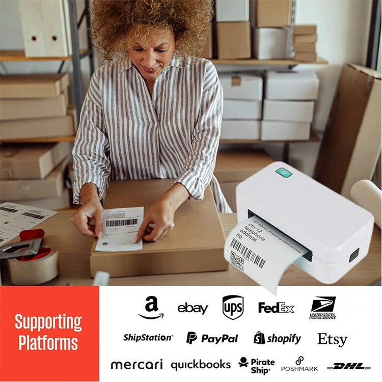 Máy in được tích hợp khay đựng giấy để đựng giấy tiện lợi, nắp trên có thể mở bằng cách nhấn nút bên hông để thao tác dễ dàng. Nó in nhanh chóng và rõ ràng, không có vết mực, lý tưởng để in nhãn vận chuyển, mã vạch và các nhãn khác ở những nơi như cửa hàng trà sữa và nhà kho.
